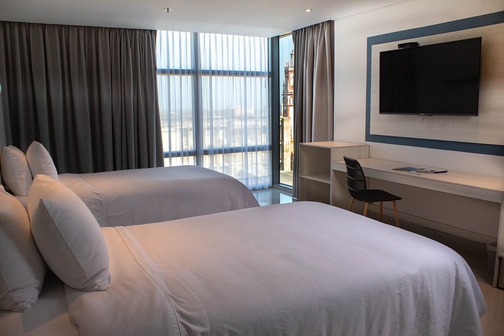Ubicado en el corazón de Barranquilla, el Hotel Manzur combina comodidad, estilo y funcionalidad para todos sus huéspedes. Nuestro edificio cuenta con 84 confortable habitaciones remodeladas, cada una cuidadosamente diseñada para ofrecer un espacio acogedor, moderno y equipado con todo lo necesario para una estadía confortable.
